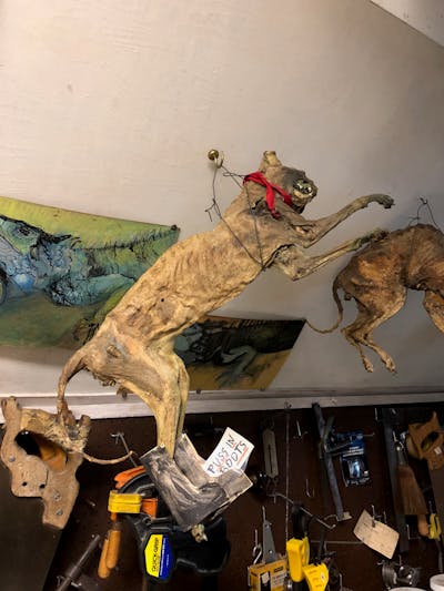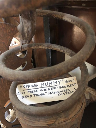 As we descended deeper into the house Jacob explained that Ray had won the "grossest dead thing" halloween contest so many times that the competition had to forbid him from entering to give other contestants a chance. "Puss in Boots", a mummified cat wearing boots, was one of the winning entrants.