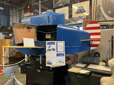 Also on display is a Link Trainer - a model of mechanical flight simulator that was used to train pilots from the 1930s to the 1950s.