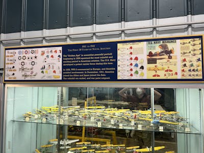 The museum is entirely volunteer-run, and the exhibits represent an abundance of love and passion. Display cabinets show off meticulous model aircraft custom made for the museum. A beautiful diorama illustrates the scale of the USS Macon airship, detailed down to the trapezes that were used to launch and recover the biplanes that travelled on board the airship. An extensive collection of uniforms dates back to the Second World War.