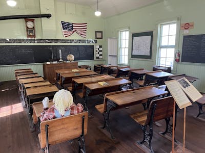 Highlights include a replica of the town's two cell jail, and a schoolhouse built in 1886 and relocated to the site of the museum in 2004.