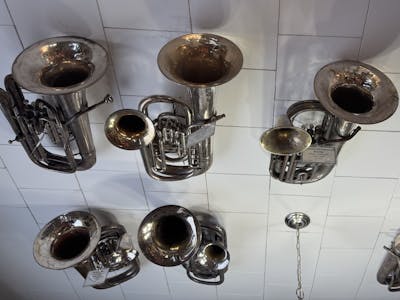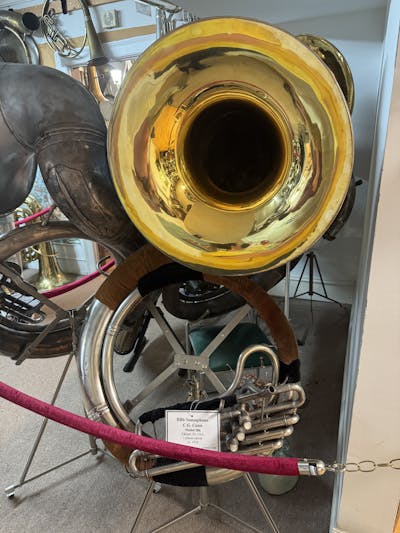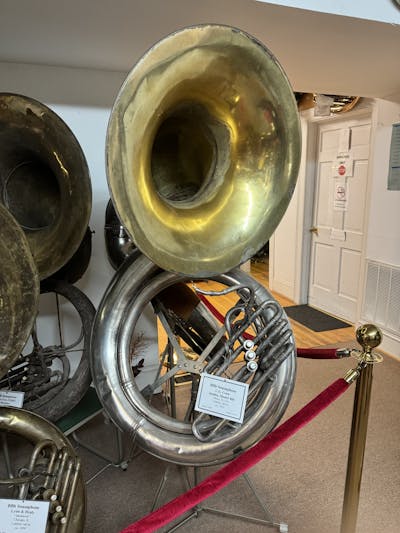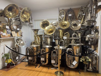 The collection entirely fills five rooms of a bright yellow house in Durham, North Carolina. Tours take around an hour and a half, and Vincent will go deep into the history and mechanics of the tuba family, plus the many stories behind the instruments in the collection.