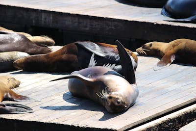 Shortly before the 1989 Loma Prieta earthquake, sea lions started to haul out onto K dock at Pier 39 in San Francisco. Their numbers steadily increased, and their protected status lead to a quandary for the pier’s management team. They decided to relinquish the dock to the pinnipeds, and thirty years later the sea lions have established themselves as a San Francisco fixture.